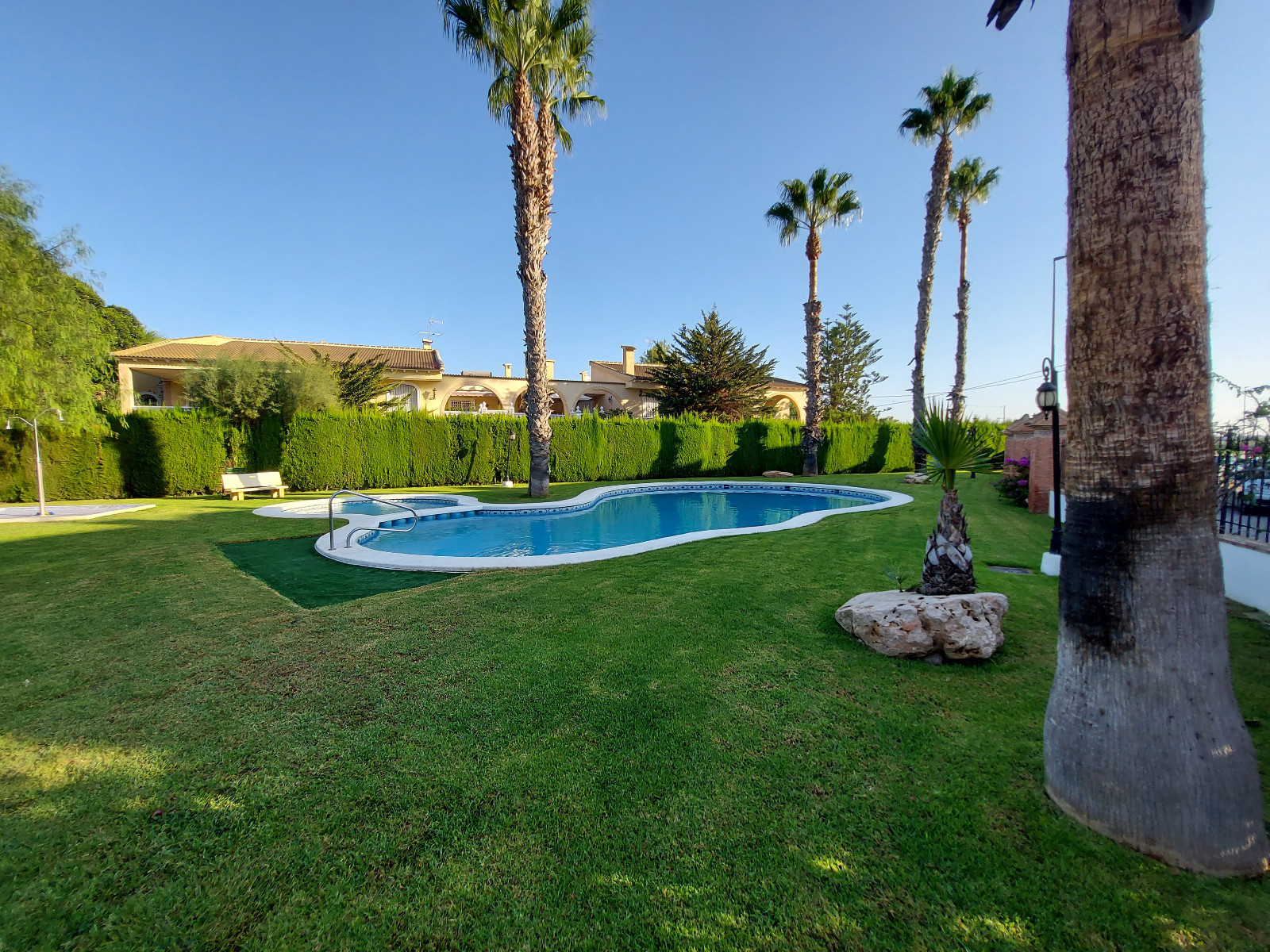 Residents enjoy access to attractive communal gardens and a shared swimming pool within this peaceful, well-maintained complex.