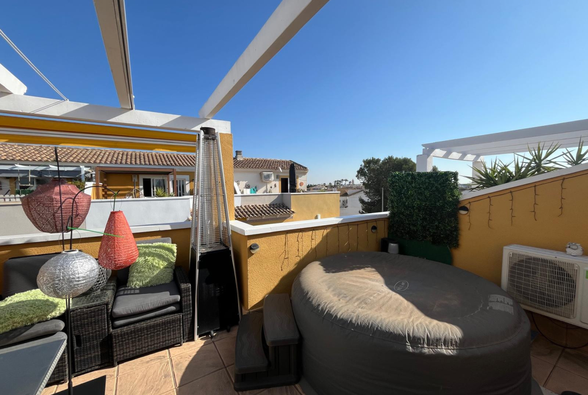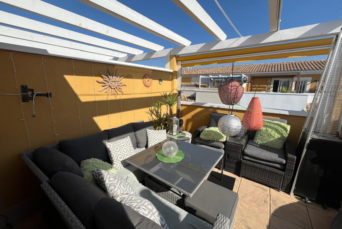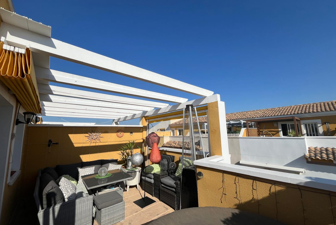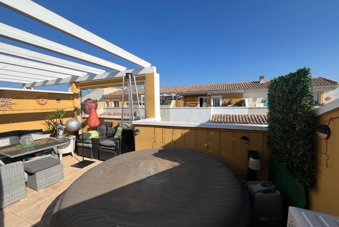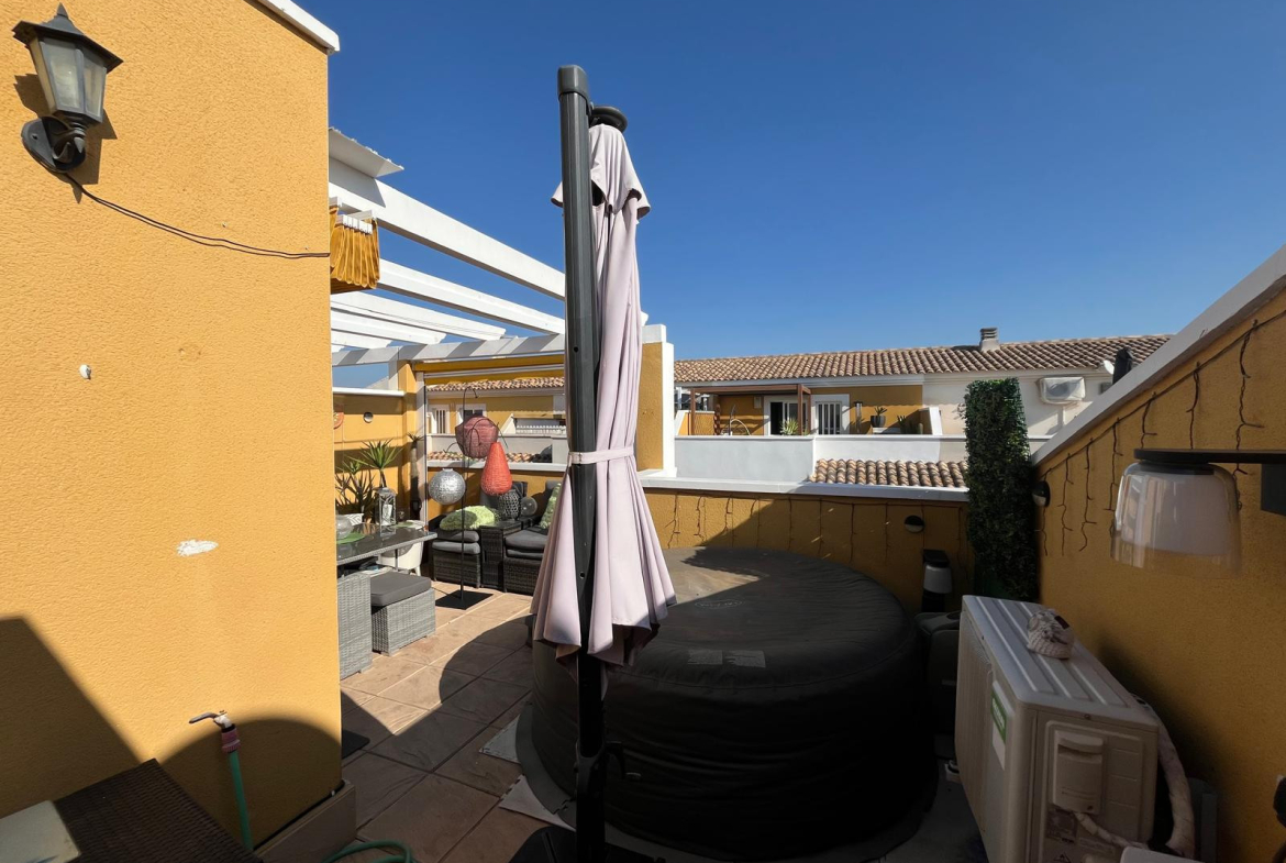 Located in the secure gated development of Residencial Villa Sol in Catral, this stylish townhouse offers modern living with generous space both inside and out.