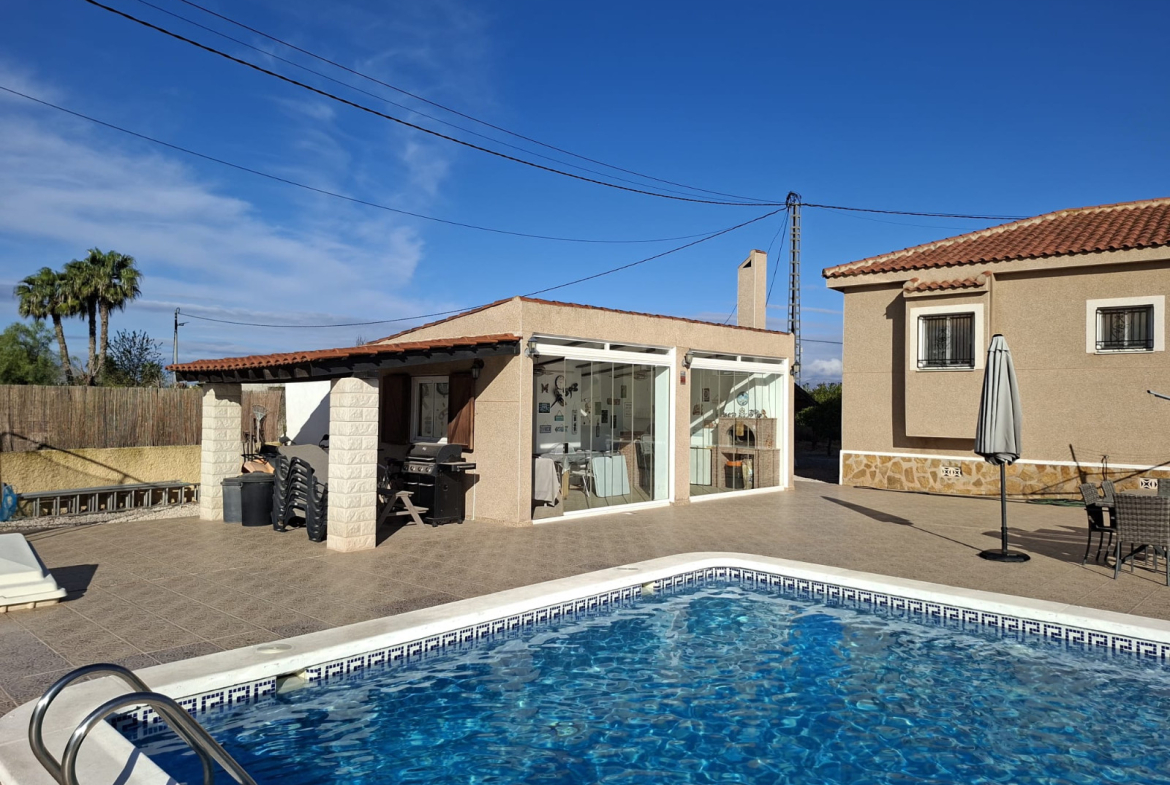 Set in peaceful countryside just minutes from Catral, this beautifully maintained south-facing villa offers space, privacy, and stunning open mountain views—while being only a 5-minute drive to shops, restaurants, and everyday amenities.