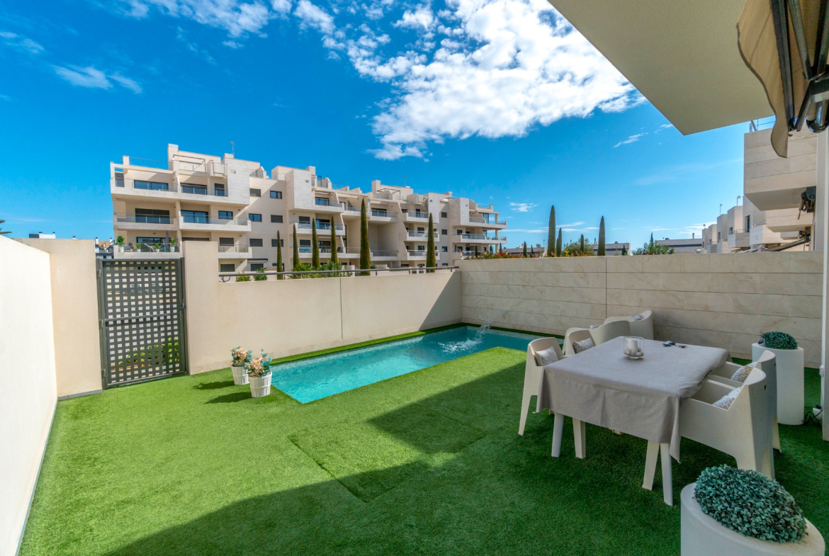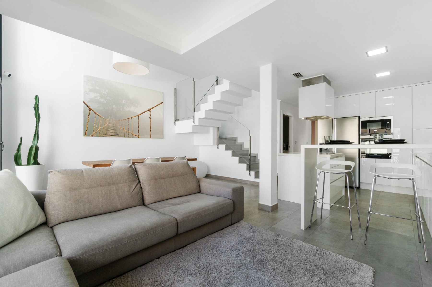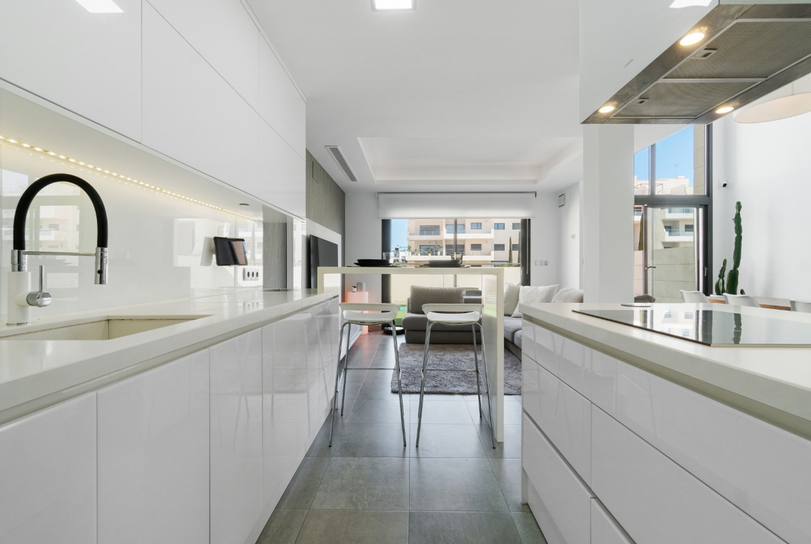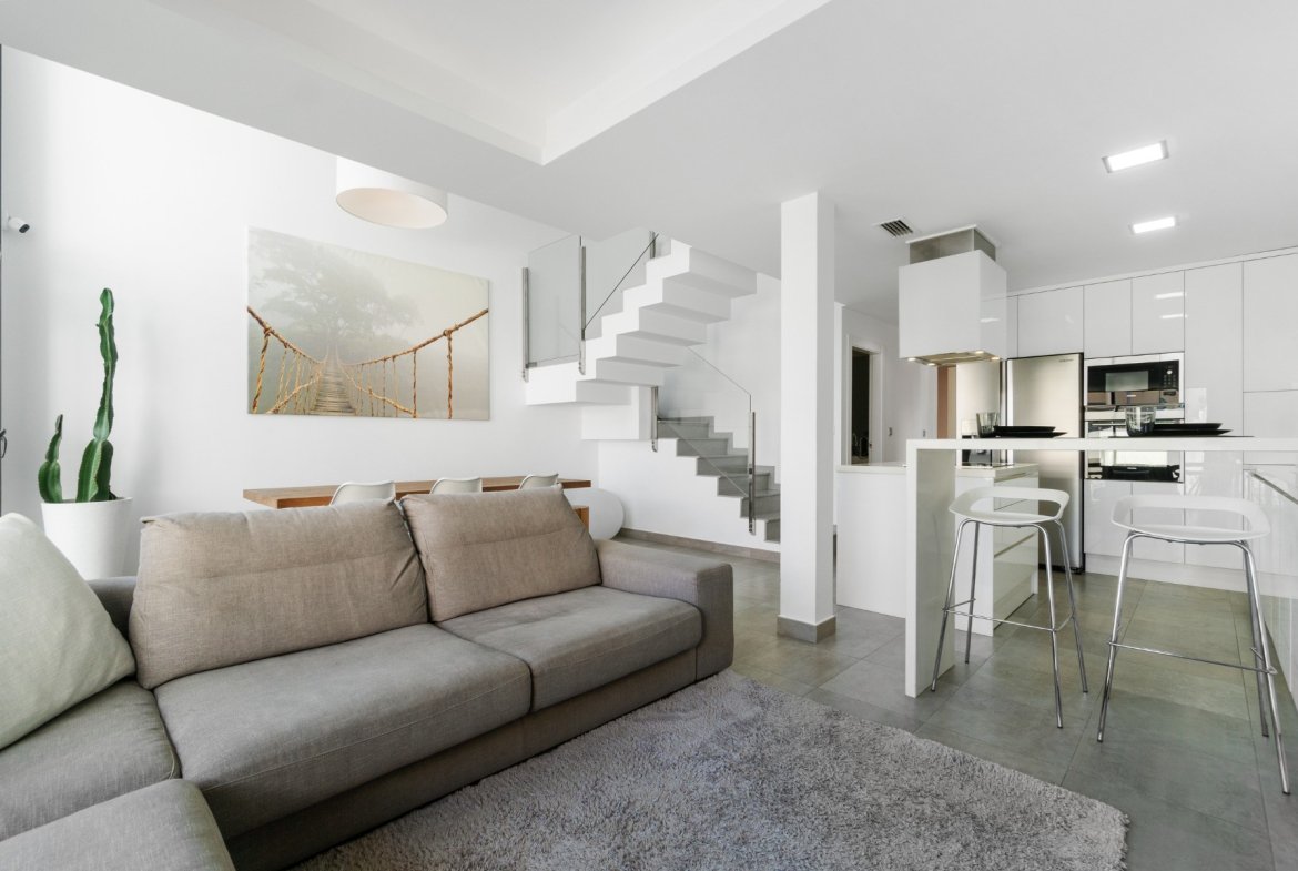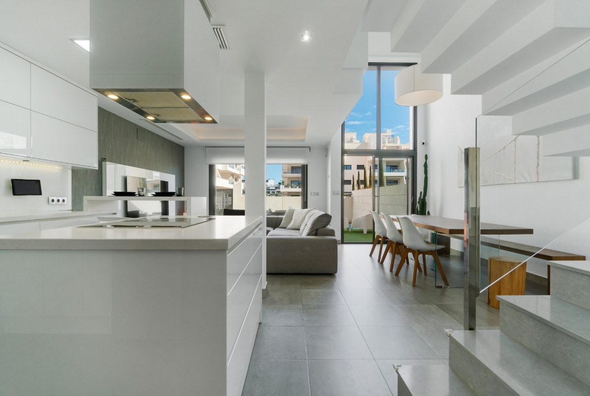 Do you want a fantastically beautiful villa in an attractive area? Then this one’s for you! This villa has 3 good sized bedrooms with built-in wardrobes, 2 bathrooms with a nice and stylish finish, large living room with double height ceilings and an elegant kitchen with a lush island! The property has many upgrades, so this is not a standard delivery from the developer. Here you will find, among other things, a pop-up socket in the kitchen island, light with hand sensor above the kitchen bench, marble shelves for shampoo etc in the showers, underfloor heating in the bathroom and in the living room, waterfalls in the pool and, in general, a very high standard! Here it comes with furniture from Procomobel, white goods from Siemens and Bosch, underground parking and a great view from the private roof terrace over a beautifully landscaped common area with green areas and heated pool!