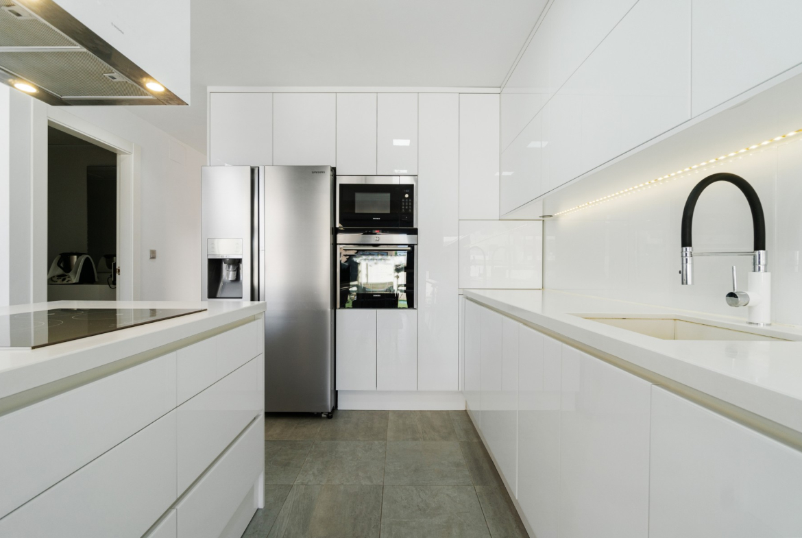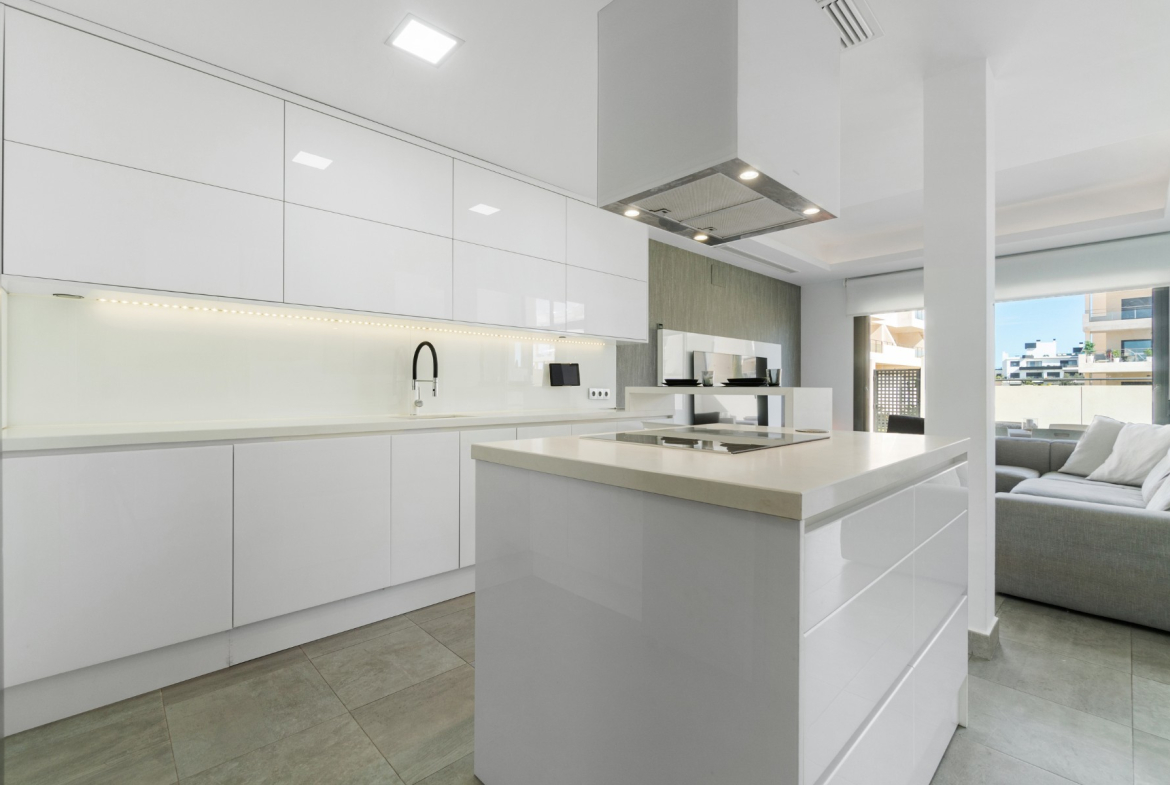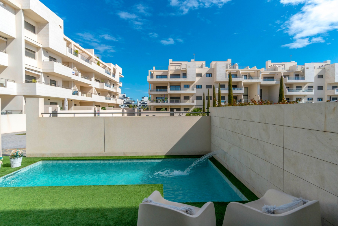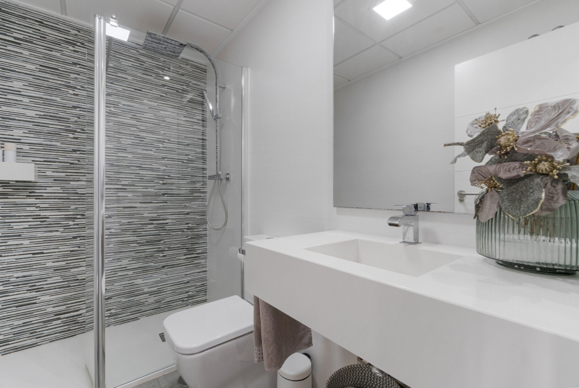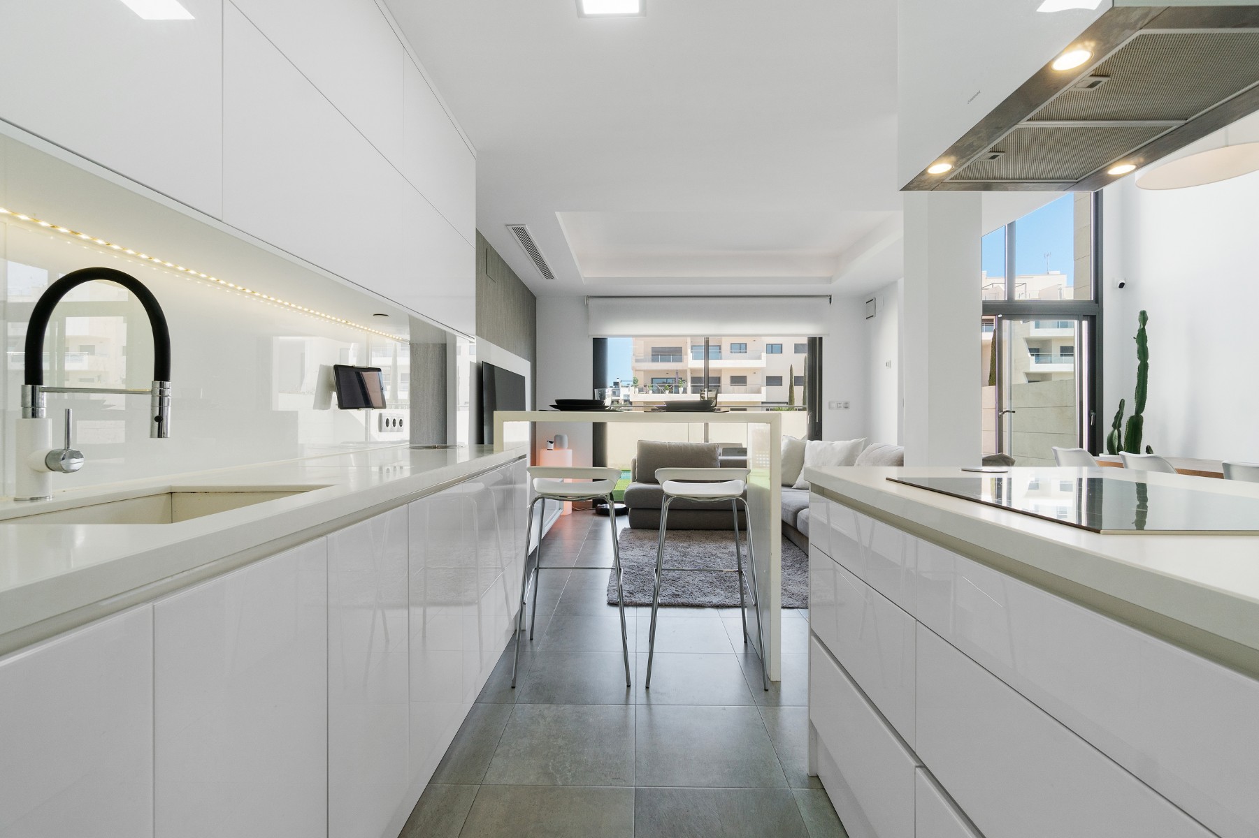 Do you want a fantastically beautiful villa in an attractive area? Then this one’s for you! This villa has 3 good sized bedrooms with built-in wardrobes, 2 bathrooms with a nice and stylish finish, large living room with double height ceilings and an elegant kitchen with a lush island! The property has many upgrades, so this is not a standard delivery from the developer. Here you will find, among other things, a pop-up socket in the kitchen island, light with hand sensor above the kitchen bench, marble shelves for shampoo etc in the showers, underfloor heating in the bathroom and in the living room, waterfalls in the pool and, in general, a very high standard! Here it comes with furniture from Procomobel, white goods from Siemens and Bosch, underground parking and a great view from the private roof terrace over a beautifully landscaped common area with green areas and heated pool!