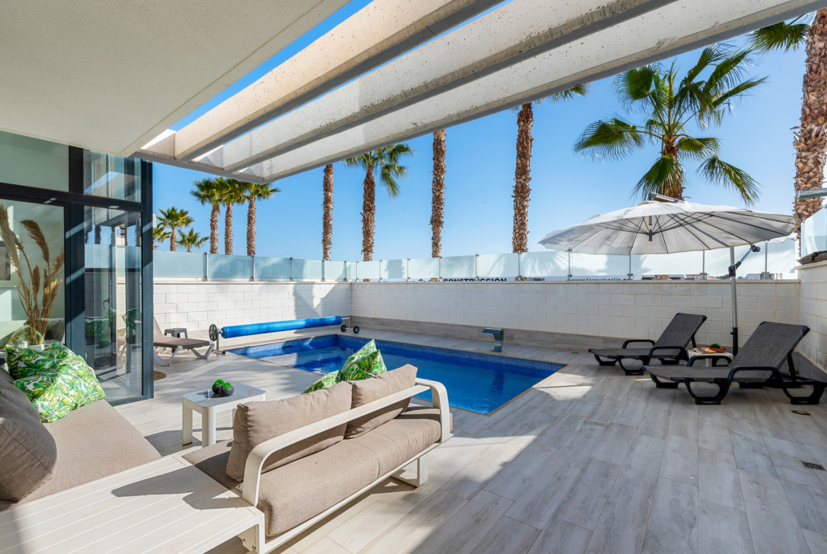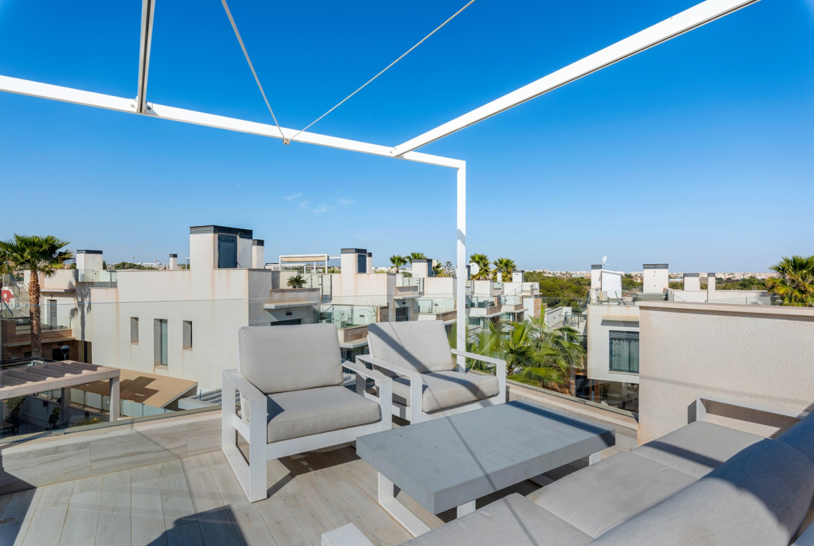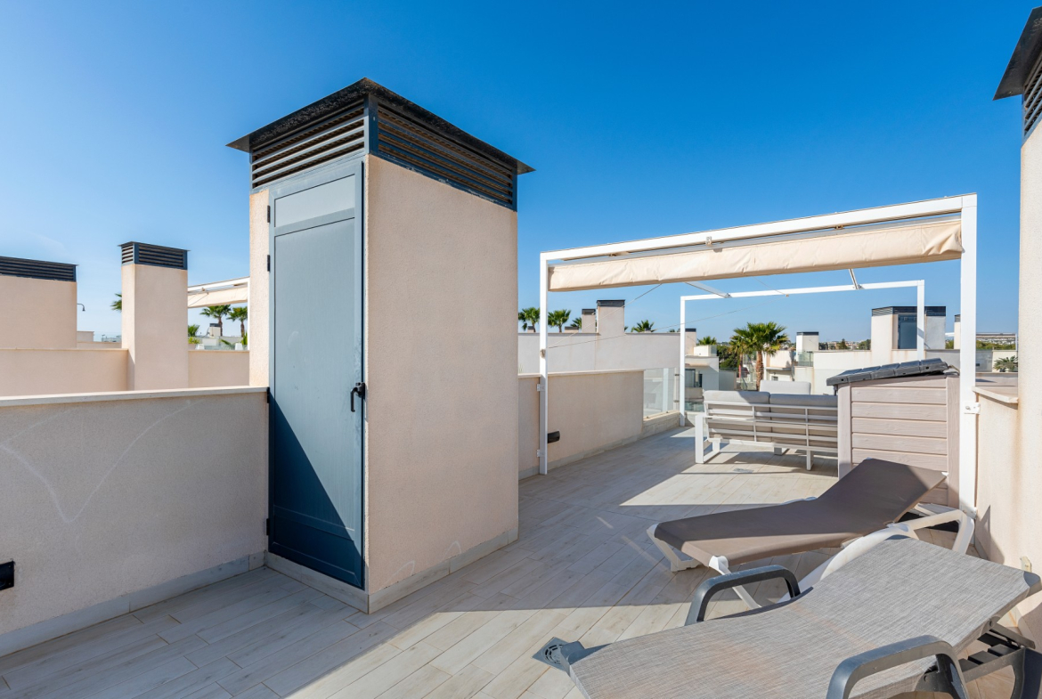 Outside, the property boasts a private swimming pool and terrace area, ideal for al fresco dining and soaking up the Spanish sunshine. With its prime location in Palm Beach III in Lomas de Cabo Roig, residents can enjoy easy access to pristine beaches, championship golf courses, and a wealth of amenities. IT is in a secure gated community.