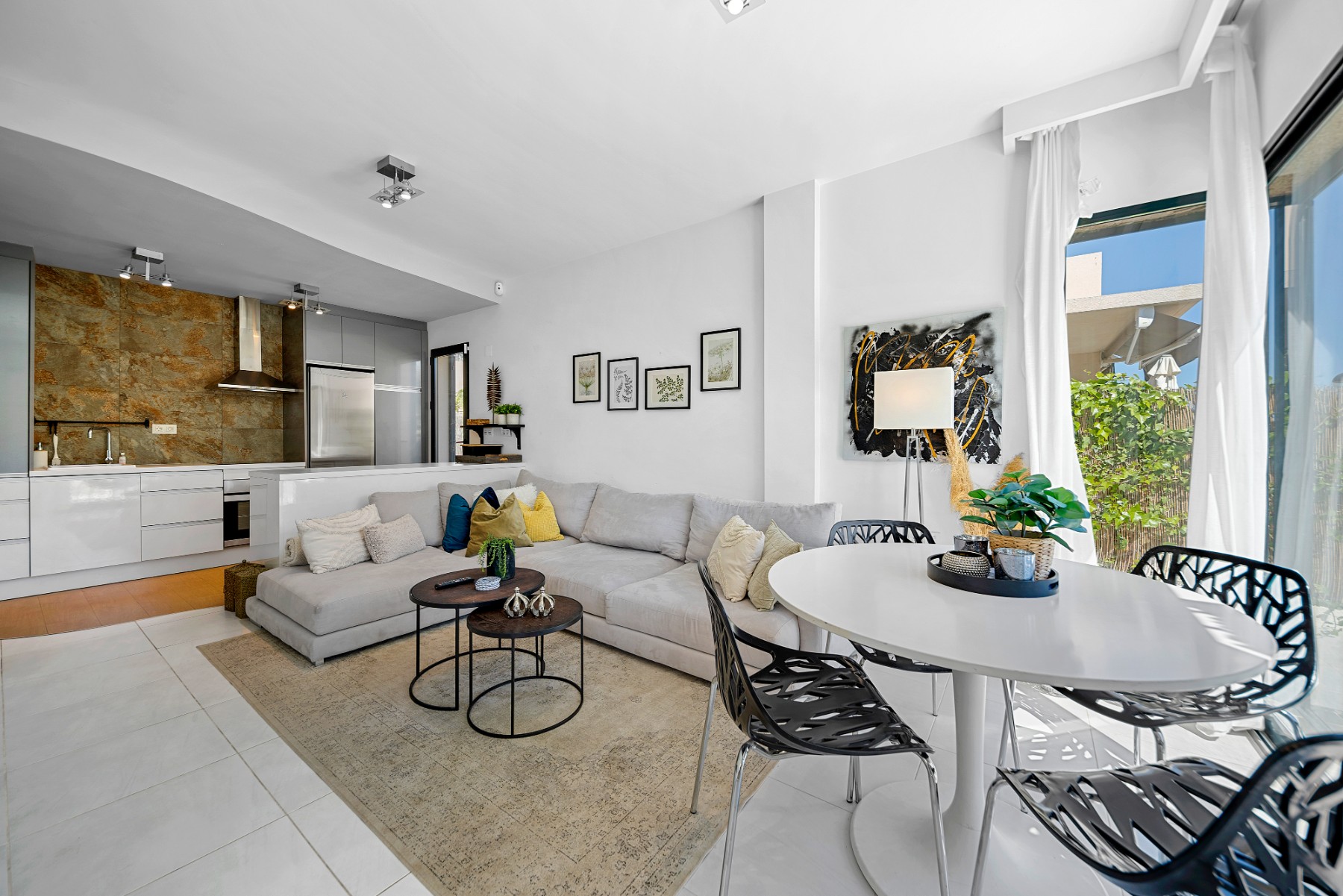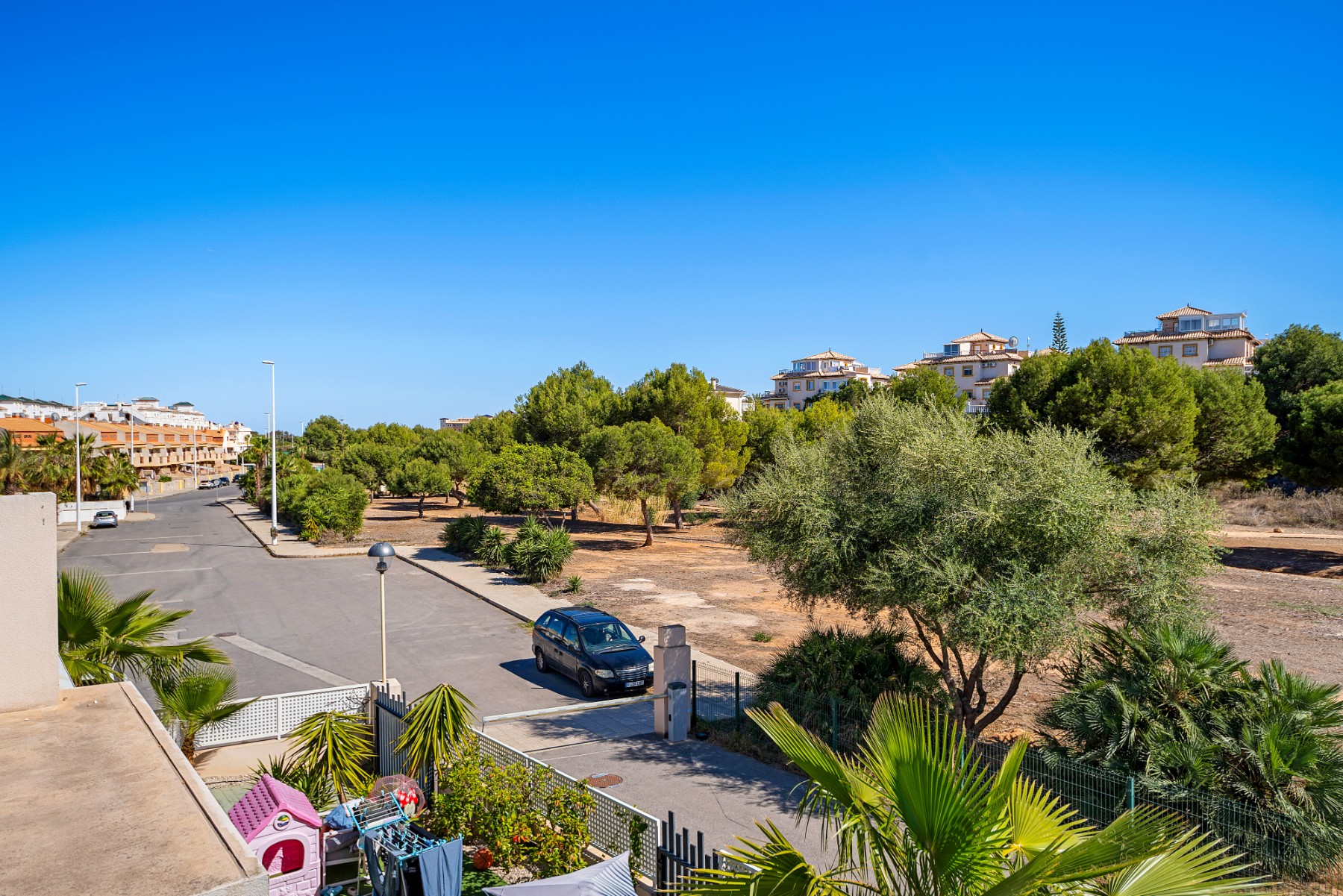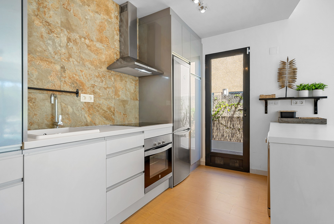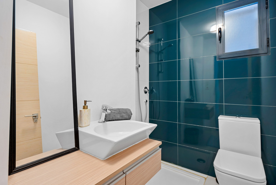 The highlight of this villa is the private solarium, perfect for soaking up the sun and enjoying panoramic views of the surrounding area. You can also find a pristine private swimming pool, an oasis for relaxation and entertainment. The villa is surrounded by 153m² of meticulously maintained space, offering ample room for outdoor dining, gardening, or simply unwinding in the Mediterranean climate.