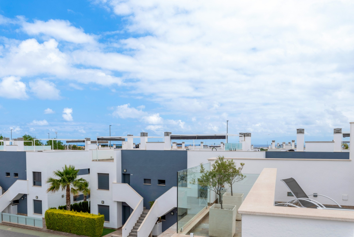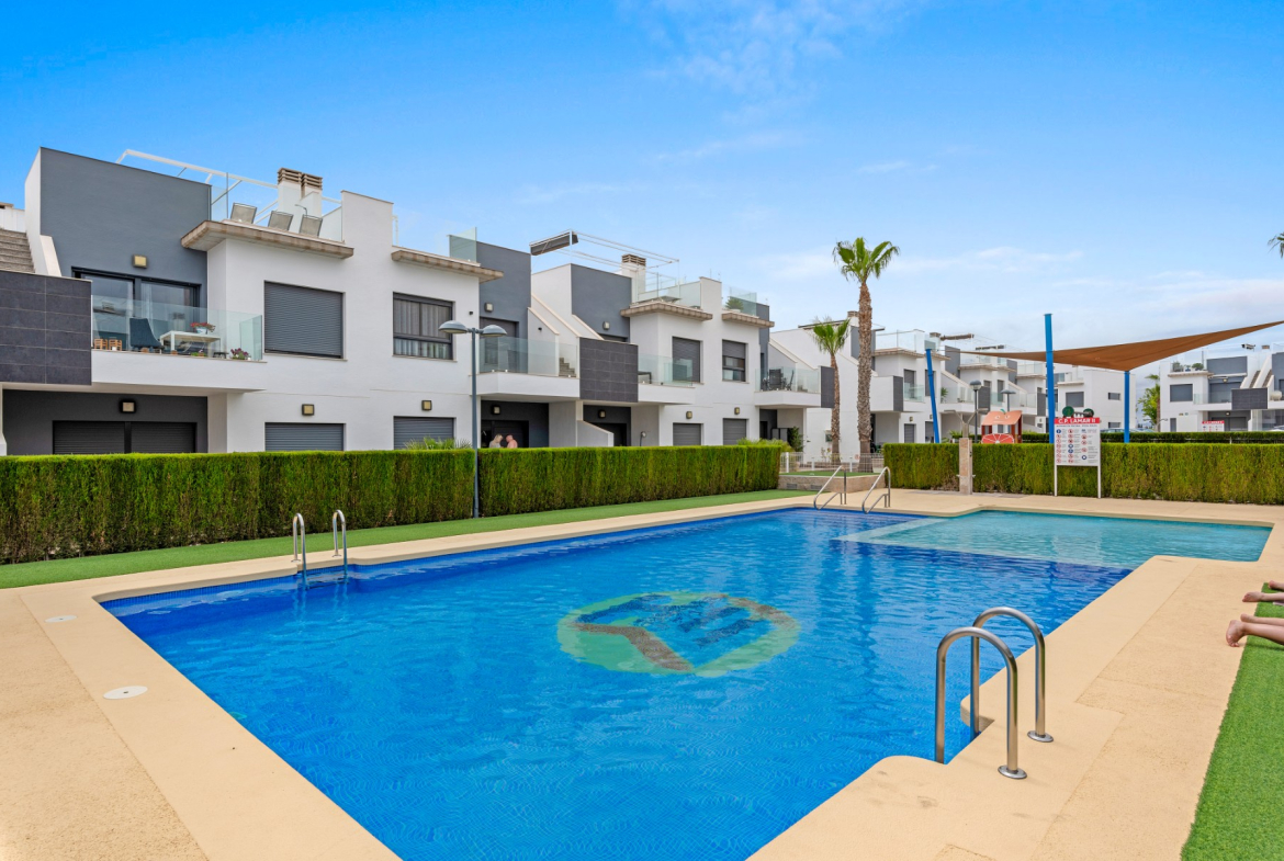 We are very pleased to present this modern apartment located in the urbanization “Lamar House” in Pilar de la Horadada. This is a great complex with two-storey buildings, “gated community” with communal swimming pool and private parking.