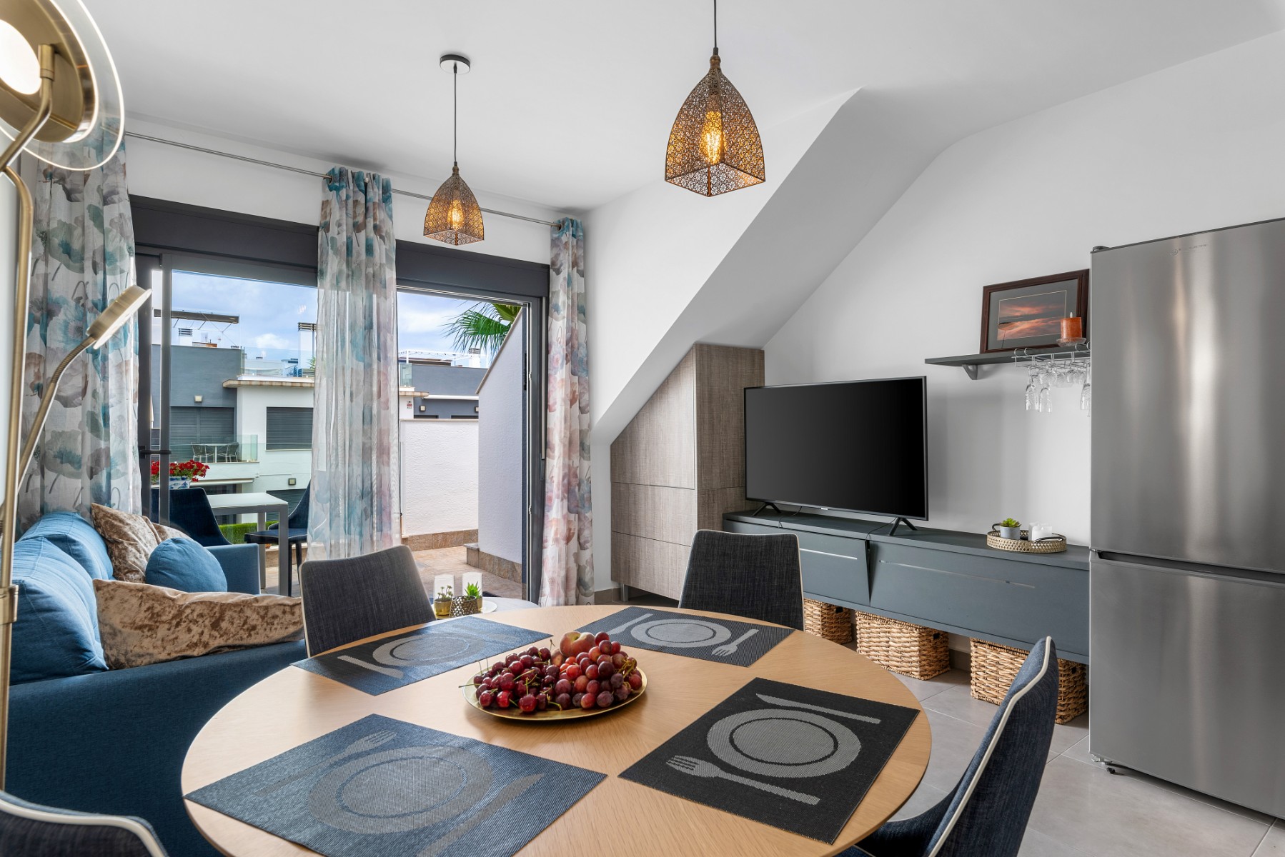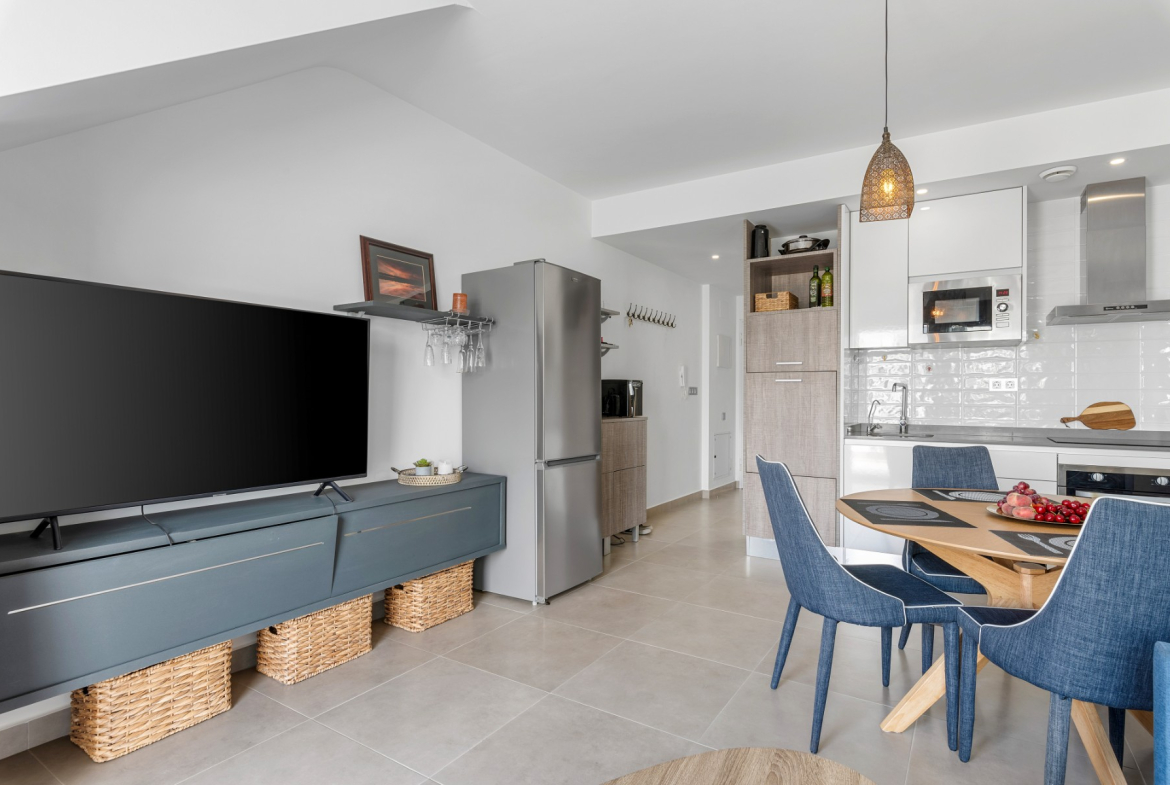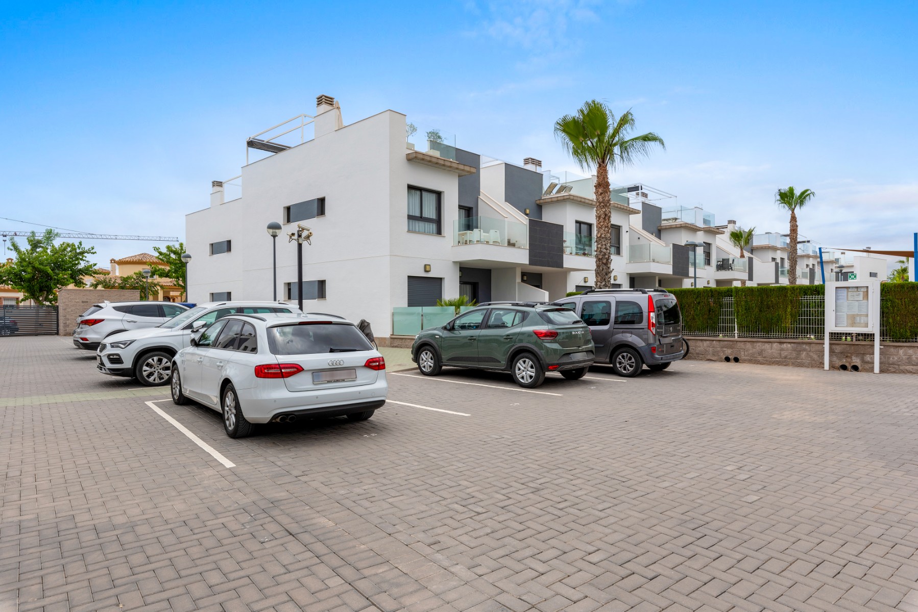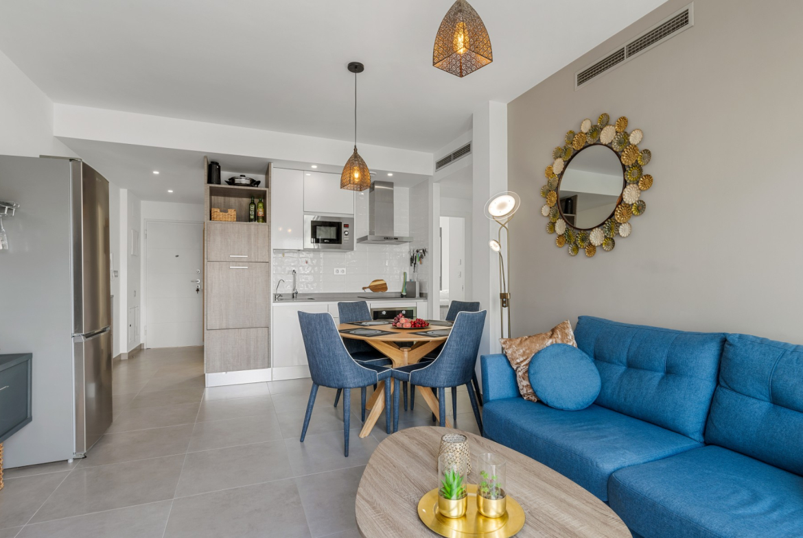 Located in Pilar De La Horadada, a small Spanish town with all the necessary amenities. A short walk into the center where you will find restaurants, cafes, supermarkets, shops, wine bars and much more. If you want a trip to the beach, it takes about 5 minutes to drive down, or a 10-minute bike ride along the canal – a safe road without car traffic.