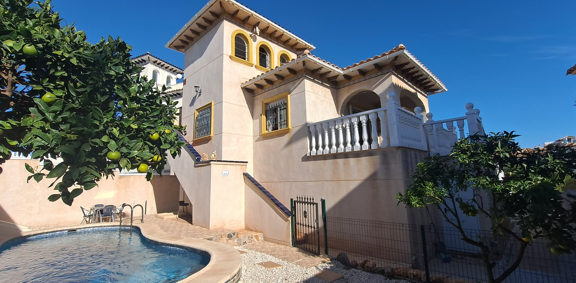 Fabulous renovated 5 bedroom villa with private pool, perfectly situated in the vibrant area of La Zenia. Offering a seamless blend of modern comfort and convenience, this property is ideal for those seeking a prime location just a few minutes away from amenities and the popular La Zenia Boulevard. Key Features:Prime Location: Just a 2-minute walk from La Zenia Boulevard, surrounded by bustling commercial hubs, restaurants, and entertainment options. Conveniently located between the lively areas of Playa Flamenca and La Zenia, making it the perfect spot for dining, shopping, and enjoying all the attractions of the Orihuela Costa. Upon entering the villa via the external stairs, you’re greeted by a spacious south-facing terrace that connects to the living and dining area through patio doors, flooding the space with natural light. An inviting open-plan layout that provides a bright and spacious environment for relaxation and entertaining. The kitchen is well-equipped to cater to daily needs. Two generously sized double bedrooms and a modern bathroom featuring both a bath and shower. Upper Level: Accessible via external stairs, the upper level boasts a private solarium, ideal for sunbathing, relaxation, or hosting social gatherings. An additional bedroom and bathroom on this floor provide extra comfort and privacy for guests. The property includes a fantastic **underbuild** which has been renovated into a fully self-contained 2-bedroom apartment on the ground floor. Living & Dining Area: Spacious and bright, perfect for extended family or visitors. Kitchen: A functional and modern kitchen area for added convenience. Bedrooms & Bathroom: Two large double bedrooms and a generous bathroom featuring a bath, shower, and WC.Outdoor Space: The villa offers a low-maintenance garden, perfect for enjoying the outdoors with ample seating areas to relax in the sun. A private pool adds to the property’s appeal, offering a refreshing escape during the warm Spanish summers.This exceptional detached villa combines luxury, location, and flexibility, making it the perfect choice for anyone looking to enjoy the best of La Zenia and the surrounding area. Viewing is highly recommended to appreciate all the features this property has to offer. Contact our team today to arrange your viewing!
