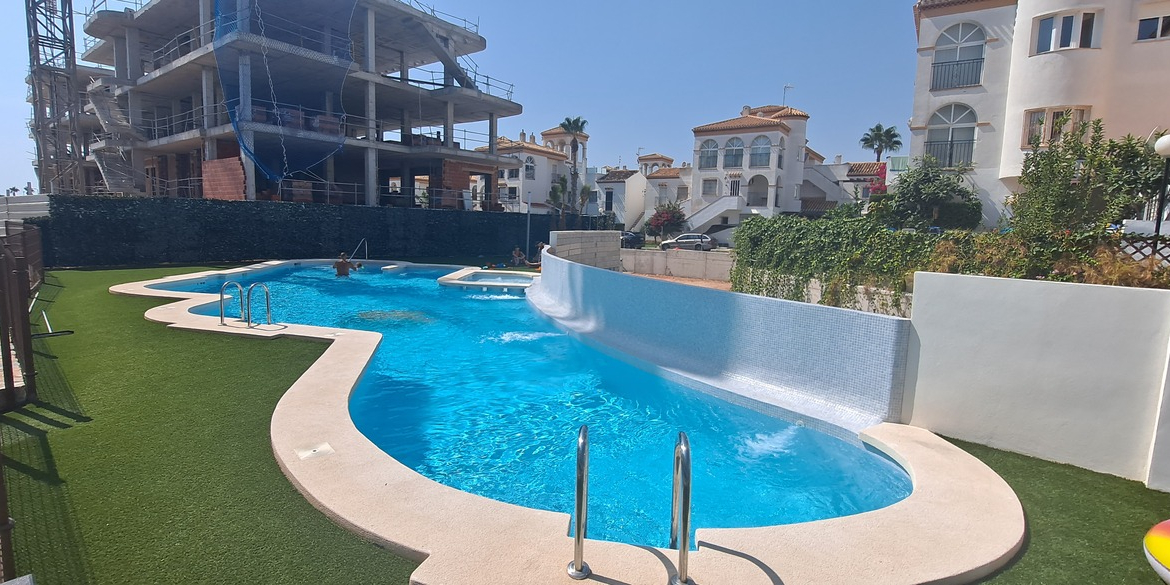 Don’t miss out on this unique opportunity to acquire an absolutely fantastic apartment in the newly developed Flamenca Sun located in the popular Playa Flamenca! This apartment consists of two bedrooms, two modern bathrooms, and an open-plan layout. The stylish living room provides direct access to a private terrace, offering a relaxing space to bask in the Spanish climate.The urbanization features a delightful green area with a communal pool for residents to cool off and enjoy.Living here allows you convenient access to various amenities such as restaurants, bars, and grocery stores within walking distance. A mere 10-minute walk will lead you to the sea and the beautiful promenade that runs along the coast. Additionally, in proximity lies Zenia Boulevard, a shopping center housing over 150 shops, restaurants, and multiple entertainment options like bowling and a casino.