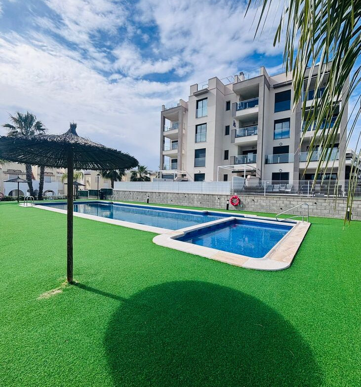 Beautifully presented second-floor apartment offering 2 bedrooms and 2 bathrooms, located in a sought-after gated community near Villamartin Plaza. This bright and spacious property is ready to move into, featuring a lift for easy access and the added convenience of an underground parking space. The apartment boasts a lovely private balcony, perfect for enjoying the evening sunshine and al fresco dining. Set within a well-maintained complex, residents can enjoy excellent communal facilities including three swimming pools and a paddle court—ideal for embracing the Mediterranean lifestyle. Ideally situated close to local amenities, bus routes, and the vibrant Villamartin Plaza, this property is perfect as a holiday home, investment, or permanent residence. A fantastic opportunity in a great location – viewing is highly recommended!