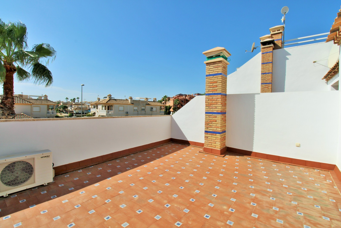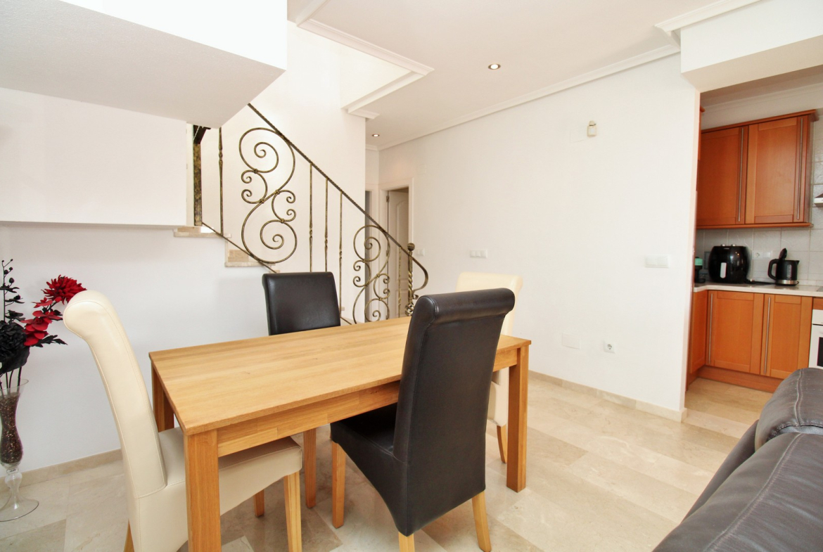 A superb example of the ever-popular Buhardilla-style townhouse, ideally situated in Pau 8, Villamartin. The property enjoys a prime position, just a 10-minute walk from the renowned Villamartin Plaza and golf course, where you’ll find an excellent choice of restaurants, bars, and shops. The house is offered fully furnished, complete with white goods and air conditioning, and is beautifully presented throughout.