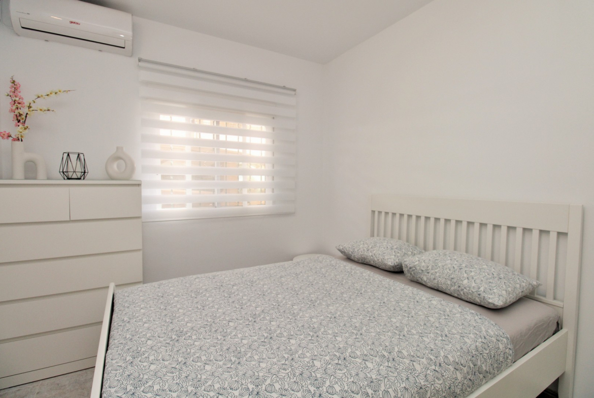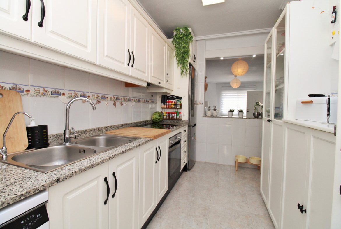 The main floor is bright and welcoming, with a comfortable lounge and dining area leading to a fully fitted kitchen, two double bedrooms, and two modern bathrooms. From the lounge you step out onto a private roof terrace complete with pergola, the ideal place to enjoy warm Mediterranean evenings. A glazed balcony, doubling as a conservatory, adds to the living space and provides a pleasant spot to relax with a book or morning coffee throughout the year.