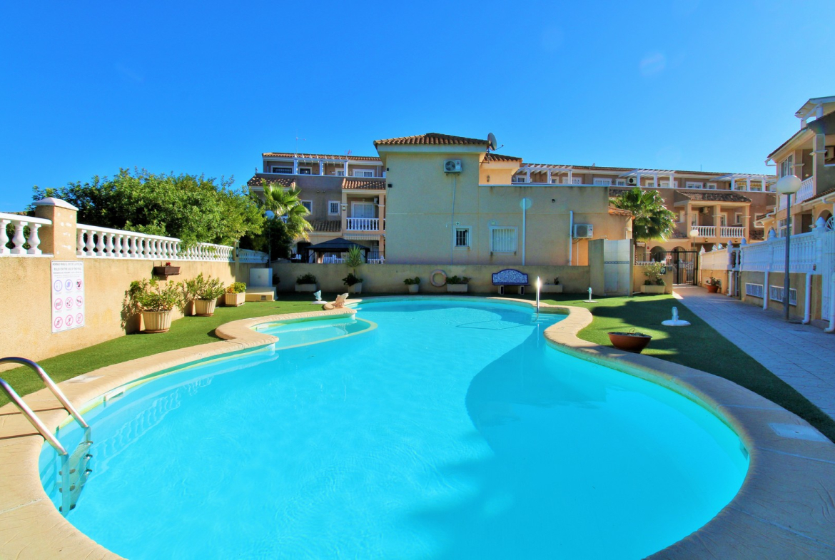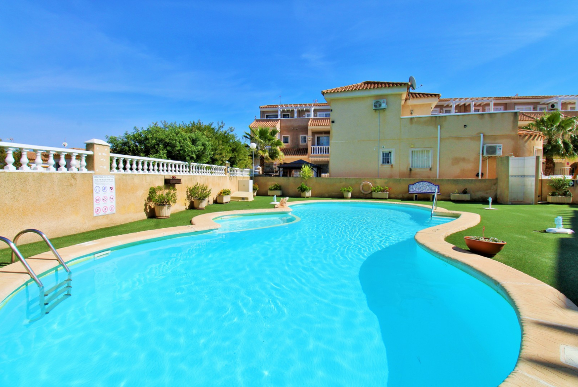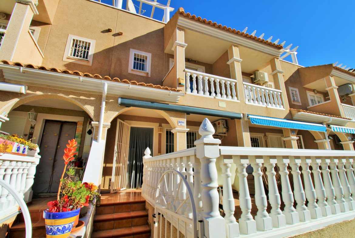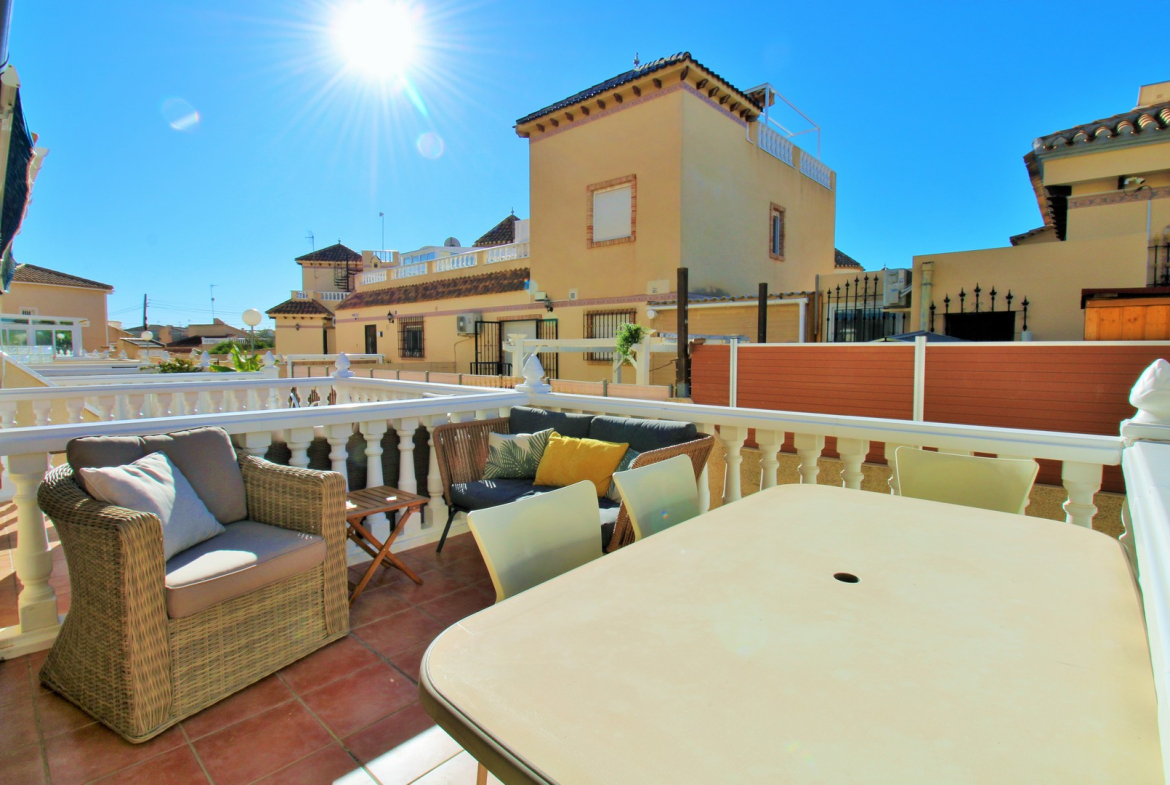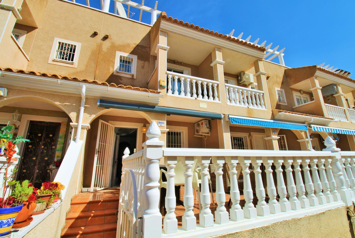 A spacious South-facing 3 bedroom townhouse located within the gated community of Paola II in Playa Flamenca, offering excellent outdoor space, a private garage with internal access, and an ideal position close to amenities.