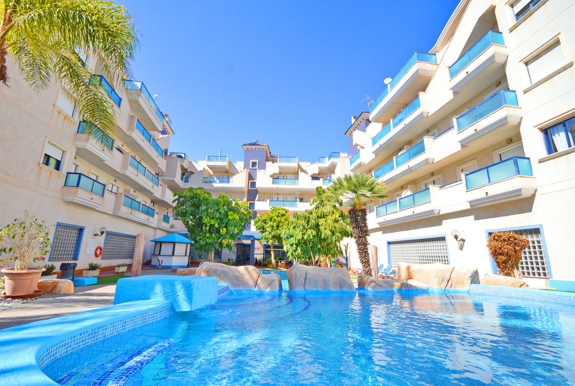 Apartment in Aguamarina, with 70 m² built, 2 bedrooms, 1 bathrooms, 1 garage/s, good condition, outward, floor 2, 1 terraces, 12 m² of terrace, kitchen american kitchen, elevator, orientation west, between 15 and 20 years, garden, communal swimming pool, heating individual, fuel electrical, air conditioner cold/hot, hot water individual, community fees/month of 50 €, floor stoneware, ibi fee: 175€